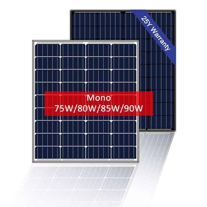 Versatile 80W mono solar panel by Couleenergy. Compact size with pre-drilled mounting holes for easy installation. Built-in bypass diodes minimize power drop during partial shading. Ideal for 12V battery systems in mobile and remote applications. Ships worldwide with flexible payment options. Available in 75W-90W variants. Customizable branding.
